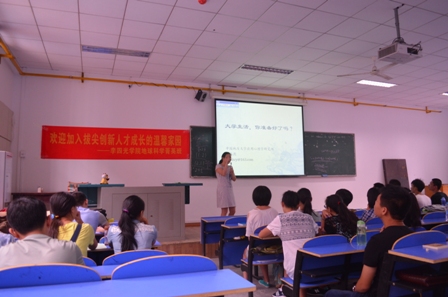 随后由我院曾希副院长为新生们介绍了学院的基本情况。曾院长通过询问同学们入学前“是否了解地质大学”为开头,分别介绍了学院成立的背景、学院育人的目标、学院文化、科教结合培养模式等,并结合大家常见的如“大学状态”和“未来发展”等问题与同学们共同探讨,给予了同学们未来学习、生活的建议。