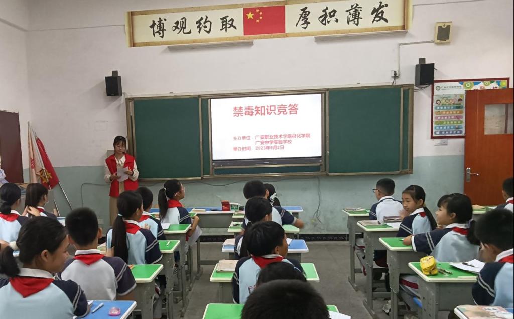 6月是“全民禁毒宣传月”,为进一步筑牢青少年学生禁毒防线,推进taptap点点官网“党建+思政教育”党建品牌建设,进一步深化“党建引领团建”专项工作,培养学生的团队意识,增强学生的责任感和使命感,6月2日,taptap点点体育联合土木工程学院、师范学院共30名志愿者来到广安中学实验学校开展“用爱唤起希望,用心抗拒毒魔”志愿服务活动。