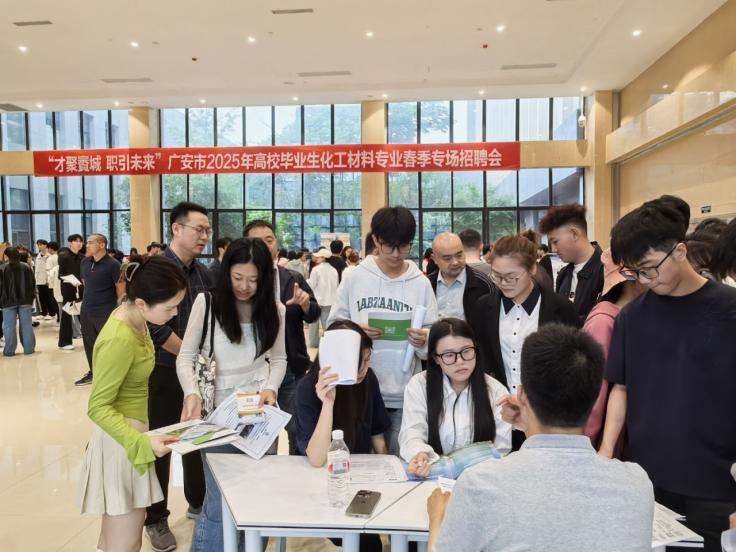 为深入贯彻党的二十大精神,切实做好学院2025届未就业、2026届毕业生就业工作,促进毕业生高质量就业,4月29日,由广安市人力资源与社会保障局、taptap点点体育、广安经开区市域产教联合体共同主办的“才聚賨城 职引未来”广安市2025年高校毕业生化工材料专业春季专场招聘会在格致楼一楼举行。招聘会由taptap点点体育、招生就业处共同承办,共邀请了省内外19家规上企业参加,提供化工材料领域就业岗位420个。学院部分2025届未就业学生、2026届全体毕业生参加,现场气氛热烈。